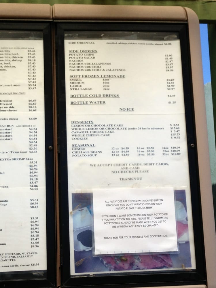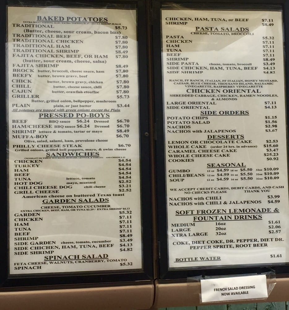 Introducing Three Potato More, a hidden gem in Alexandria, Louisiana offering a unique take on baked potatoes, pressed Po Boys, and sandwiches. The menu highlights include the traditional baked potato topped with butter, cheese, sour cream, and bacon bits, as well as the Fajita Shrimp Baked Potato with salsa and chives. Customers rave about the Philly Cheese Steak Po Boy and the BBQ Beef Po Boy, praising the flavorful combinations and generous portions. The friendly staff and quick service add to the pleasant dining experience at Three Potato More. Don't miss out on the opportunity to indulge in their signature dishes, like the Grilled Chicken Pasta Salad or the loaded baked potatoes. Whether dining in or opting for delivery, Three Potato More is a must-visit spot for a satisfying and delicious meal.